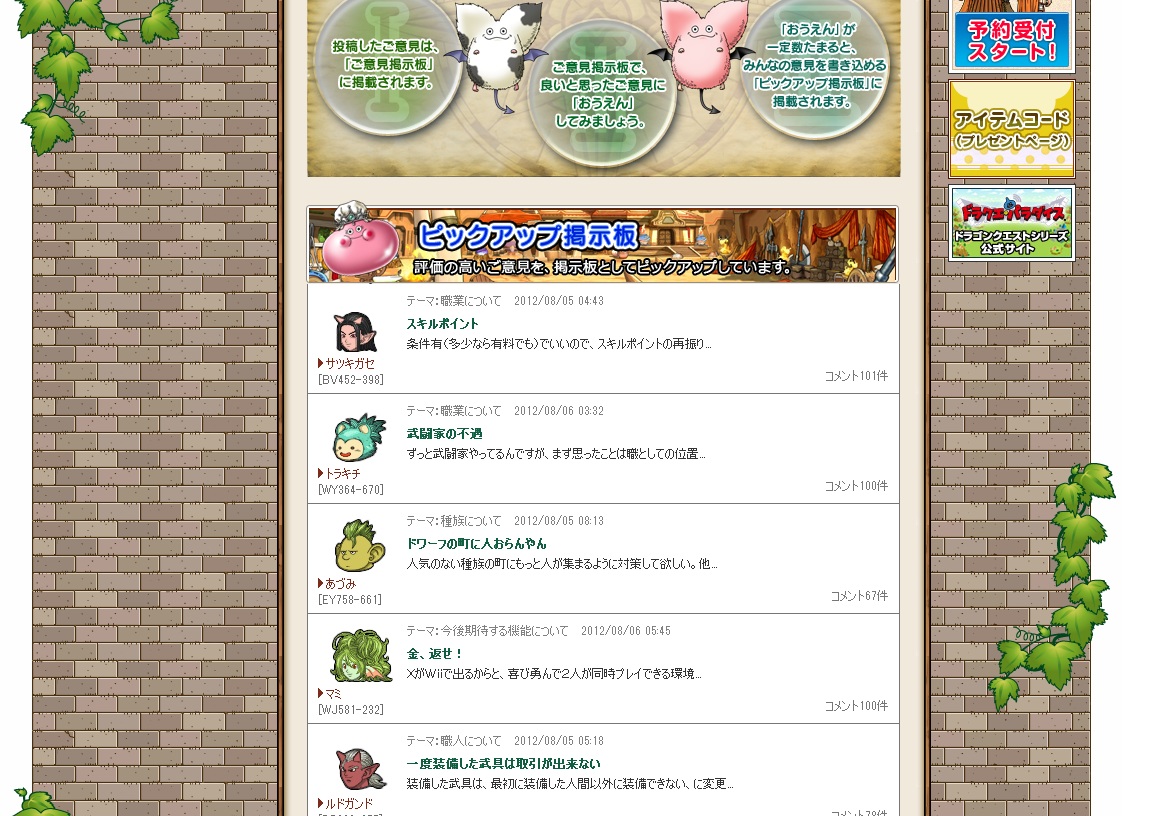 狩場一覧 グレン領東 マドハンド Lv10後半 グレン領西 どくろあらい、おおくちばし、シールドこぞう Lv10前半 しびれだんびら、ギズモ Lv10後半 ベコン渓谷 メイジドラキーLv10中盤 ランドンフット キメラ Lv30前後 ナグアの洞穴 ピクシー LV30前半 オルフェア西 トンブレロ Lv20~Lv50 リンクル地方 キメラ、アローインプ Lv20後半 オルフェア地方東 ガートラント領 メイジキメラ Lv30後半 ミューズ海岸 キメラ トンブレロ 猫島 キャットバット、ジャガーメイジ、プリズニャン Lv20後半 アズラン地方 ふゆうじゅ、どくやずきん Lv20前後 スイゼン湿原 ガートラント領 ぐんたいがに、ハンターフライ Lv20前半 スイの塔 ともしびこぞう カミハルムイ領北 ピンクモーモン Lv30前半 カミハルムイ領南 ピンクモーモン Lv20後半 カルデア山道 バアラック Lv30前半 ウルヴェア地下遺跡 ガタラ原野 アイアンクック エゾソル峡谷 ドラゴンキッズ Lv40前半 レベルなかなか上がんね~よ~ |